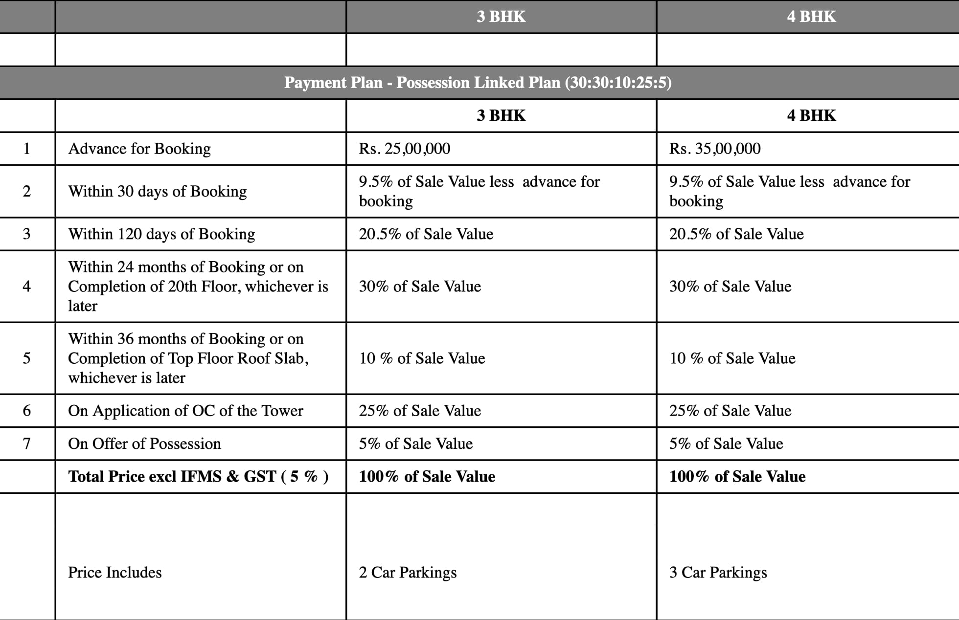 • 4 Bhk+SQ- 3395 Sqft @ Rs 20500/Sqft+GST+IFMS
