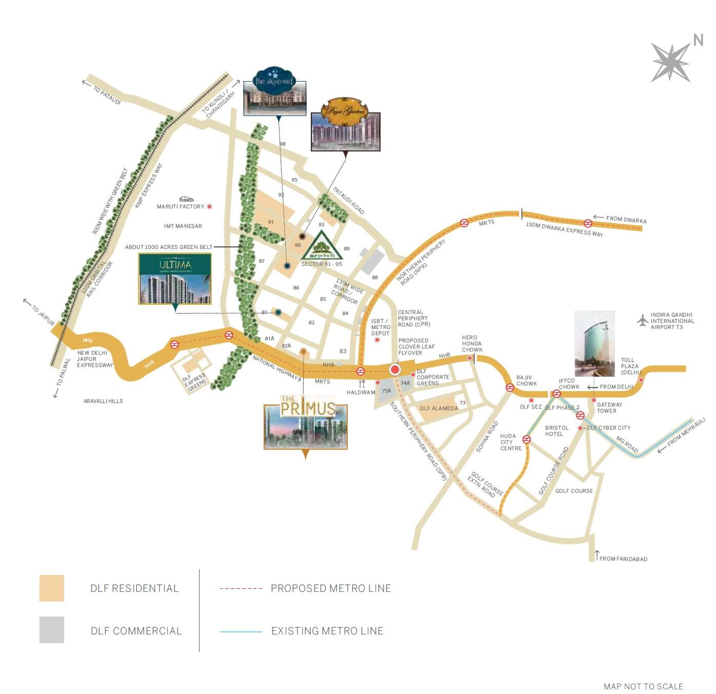 • Ultima is the first project on the sector road ( 60 m wide road , sector 81) and nearest to NH 8 hardly 150 metres inside the main highway......Unbeatable location......