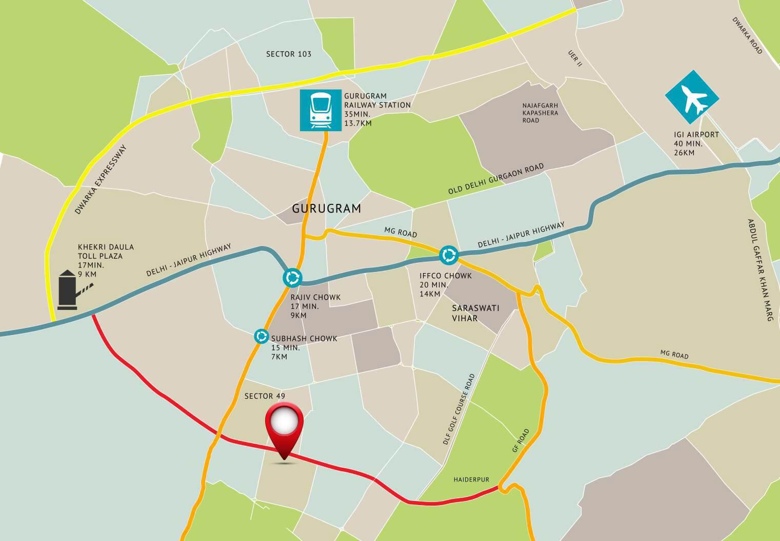 • 05-minute drive from Sector 55-56 rapid metro & NH-8