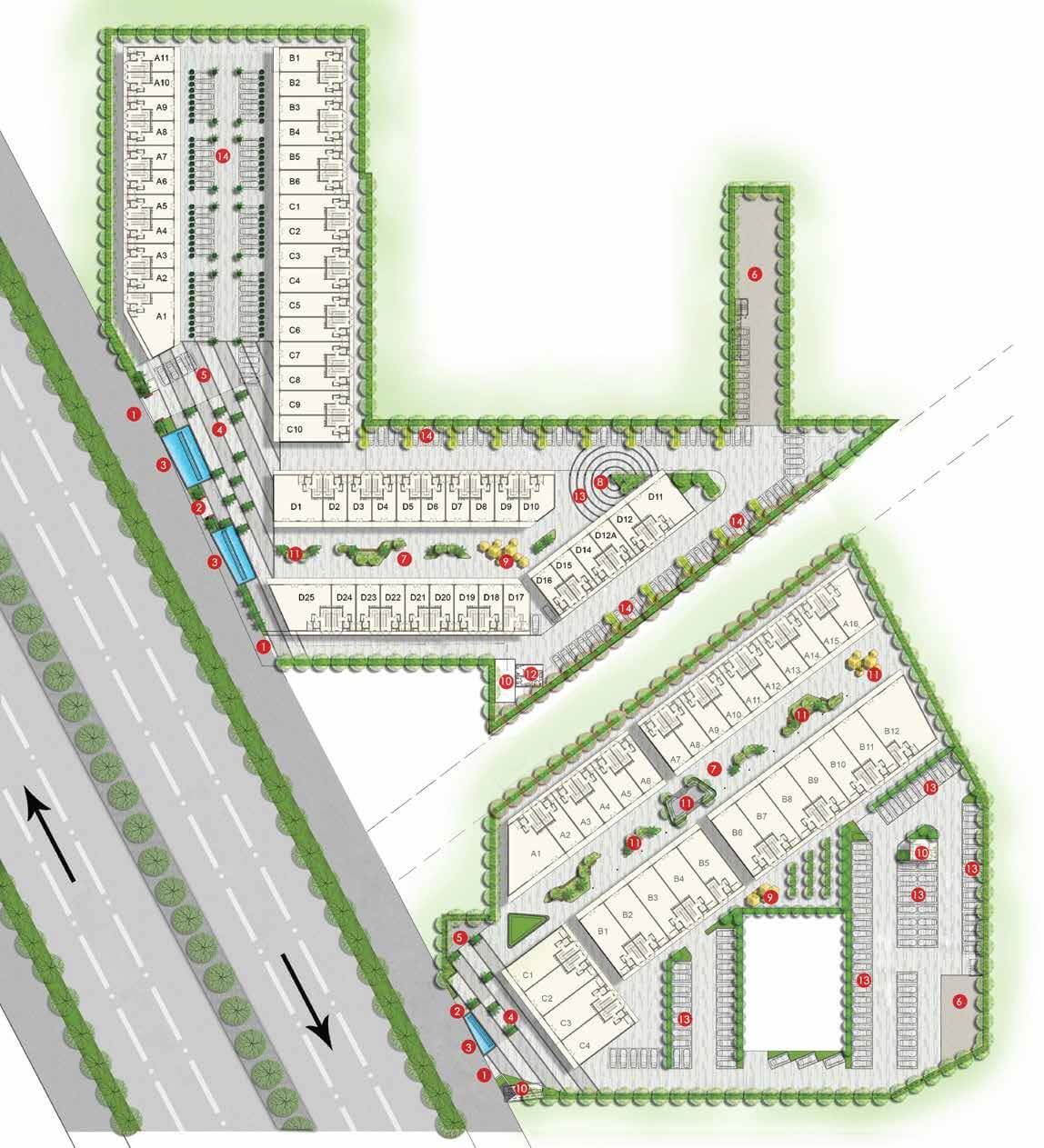 - Delectable Shop-Cum-Office (SCO) Plots across 4 ranges – A, B, C and D with areas ranging from 84 – 175.8 sq.mtrs. (100.46 – 210.26 sq.yd.)