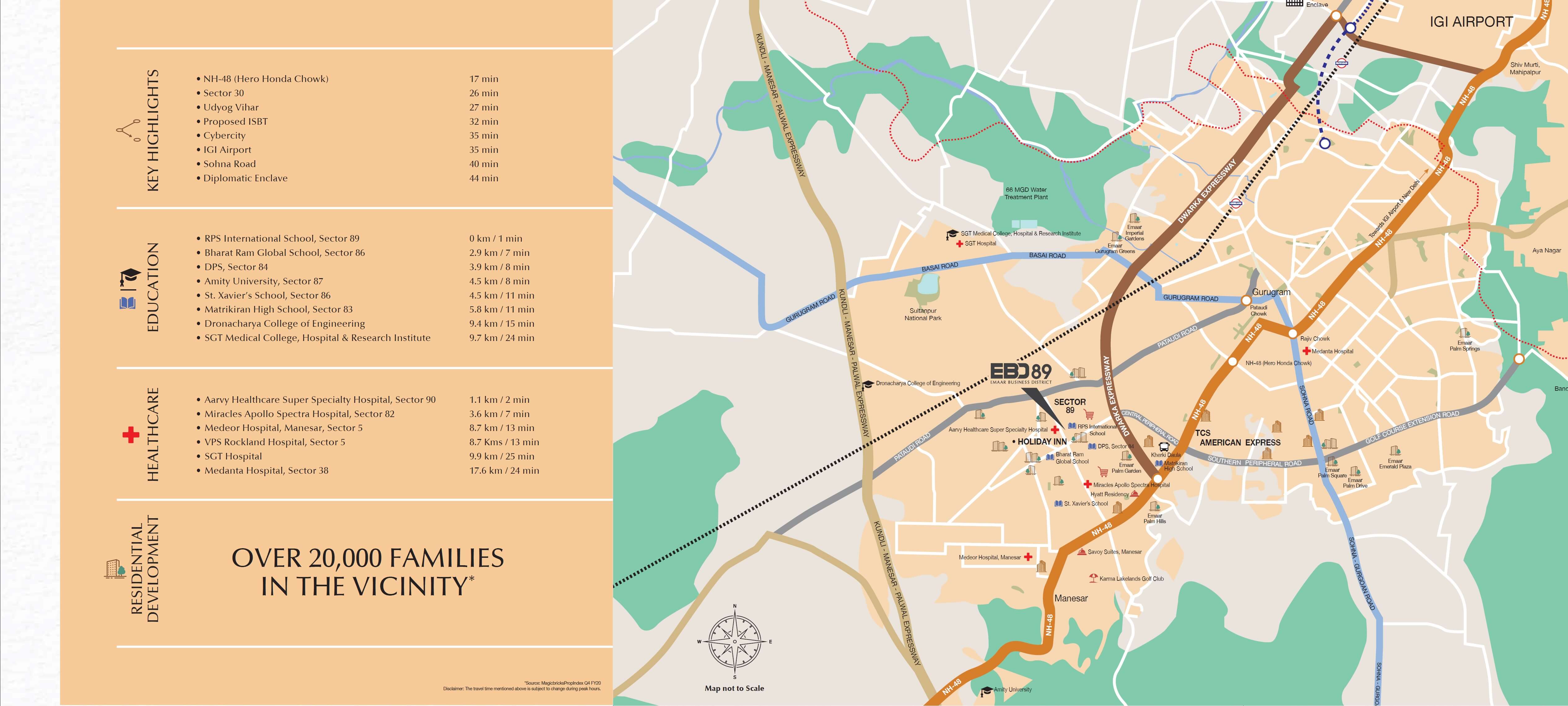 Emaar Business District (EBD) - 89 is a Commercial Plotted Colony project which is being developed on land admeasuring 3.70625 acres (1.4999 hectares) situated at Sector 89, in the revenue estate of Village Badha,District Gurugram, Haryana within the boundaries of Sector 89, Gurugram, Haryana, India. The Commercial Plotted Colony comprising of Shop-Cum-Office (SCO) Plots is being developed in a planned and phasemanner over a period of time pursuant to License bearing No. 52 of 2021 dt. 18.08.2021 valid up to 17.08.2026 granted by the Director Town and Country Planning, Haryana