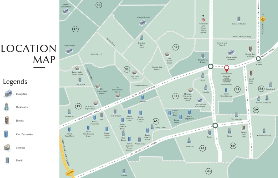 · Well-connected to Key Commercial Corridors, including Golf Course Road, SPR, Dwarka Expressway, NH-48, and MG Road