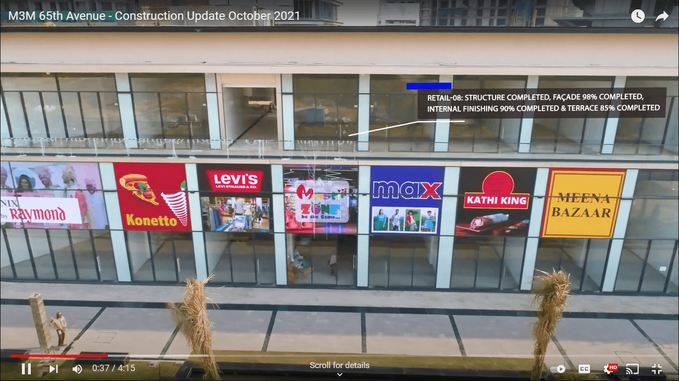 M3M Launched M3M 65th Avenue Commercial On Golf Course Extn Road Gurgaon Sector 65. M3M 65th Avenue NCR Biggest 14 Acres High Street Retail Market With Offices & Restaurant Space. M3M 65th Avenue Commercial Shops Available On- Lower Ground Floor, Ground Floor, First Floor With Size Starting From 600 sq. Ft. With Attractive Assured Return Plans. M3M 65th Avenue Construction Partners TATA Projects, Construction Already Started on Site.