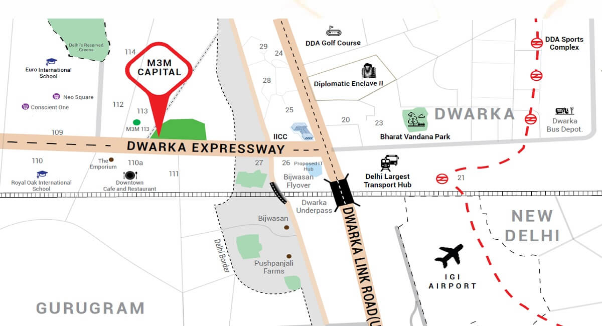 The M3M Capital has unique features like exclusive golf-courses, private foyer, green landscape, and separate yoga & meditation area. It also has a 60,000 square feet Clubhouse which is one of the largest on the Dwarka Expressway.At present, 5 towers are being built in the project area of about 16 acres. To be located on the 200 meter wide road on Dwarka Expressway, M3M Capital would also have good connectivity with India International Convention Centre and Diplomatic Enclave.