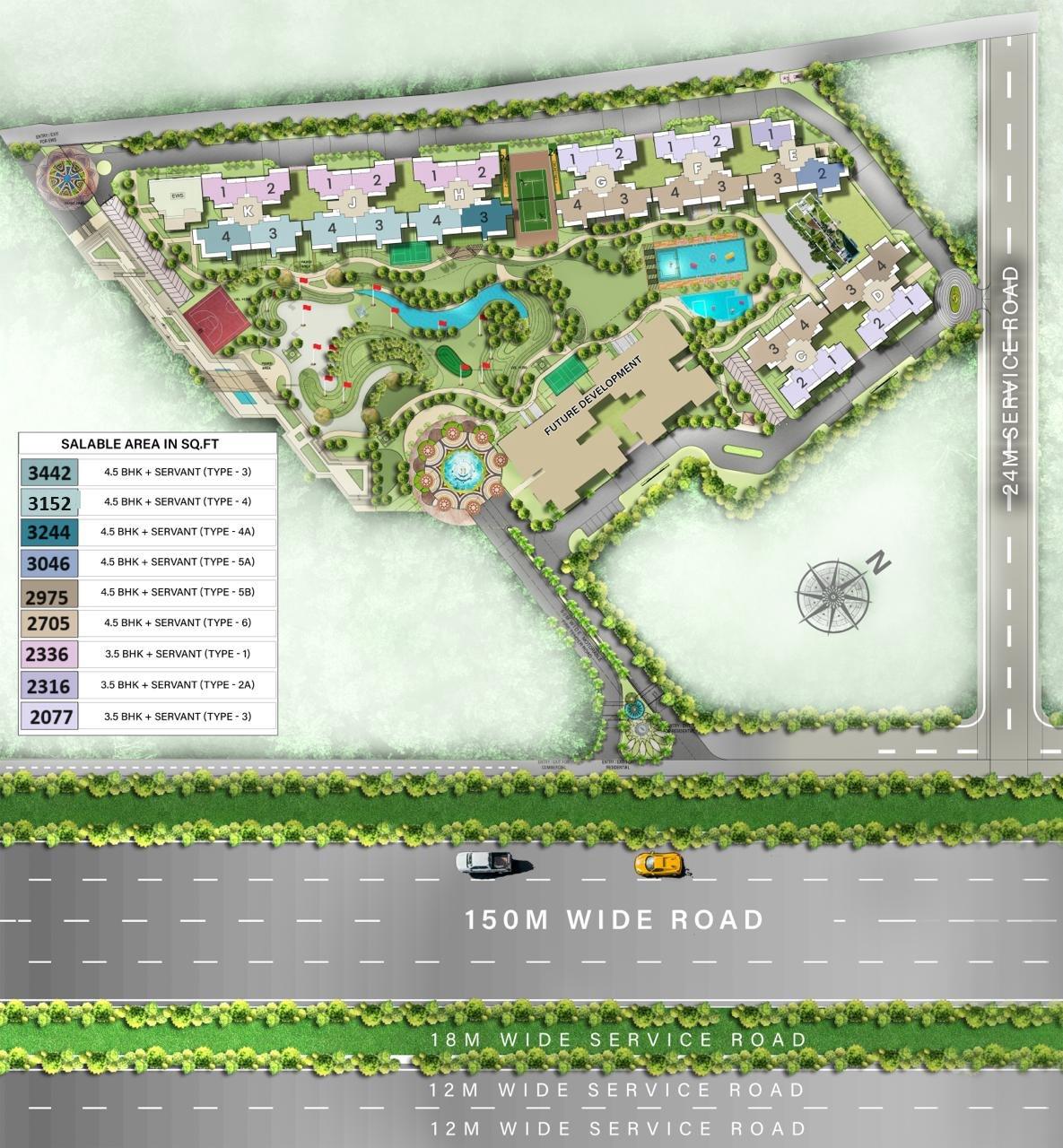 This expansive development encompasses 10 acres within a vast 250-acre Smart City project. The soaring buildings reach up to 32 floors and boast the expertise of renowned professionals like GPM, Unitrans Mobility, HBA, and Oracles. Nature lovers will appreciate the luxurious 9+9 hole chip and putt golf retreat spread across 1.25 acres. Expansive central vistas spanning 7.5 acres with meandering water bodies, fountains, and lush green spaces offer a tranquil escape for residents. Shaded benches and gazebos provide inviting sitting areas to relax and enjoy the serene ambiance.