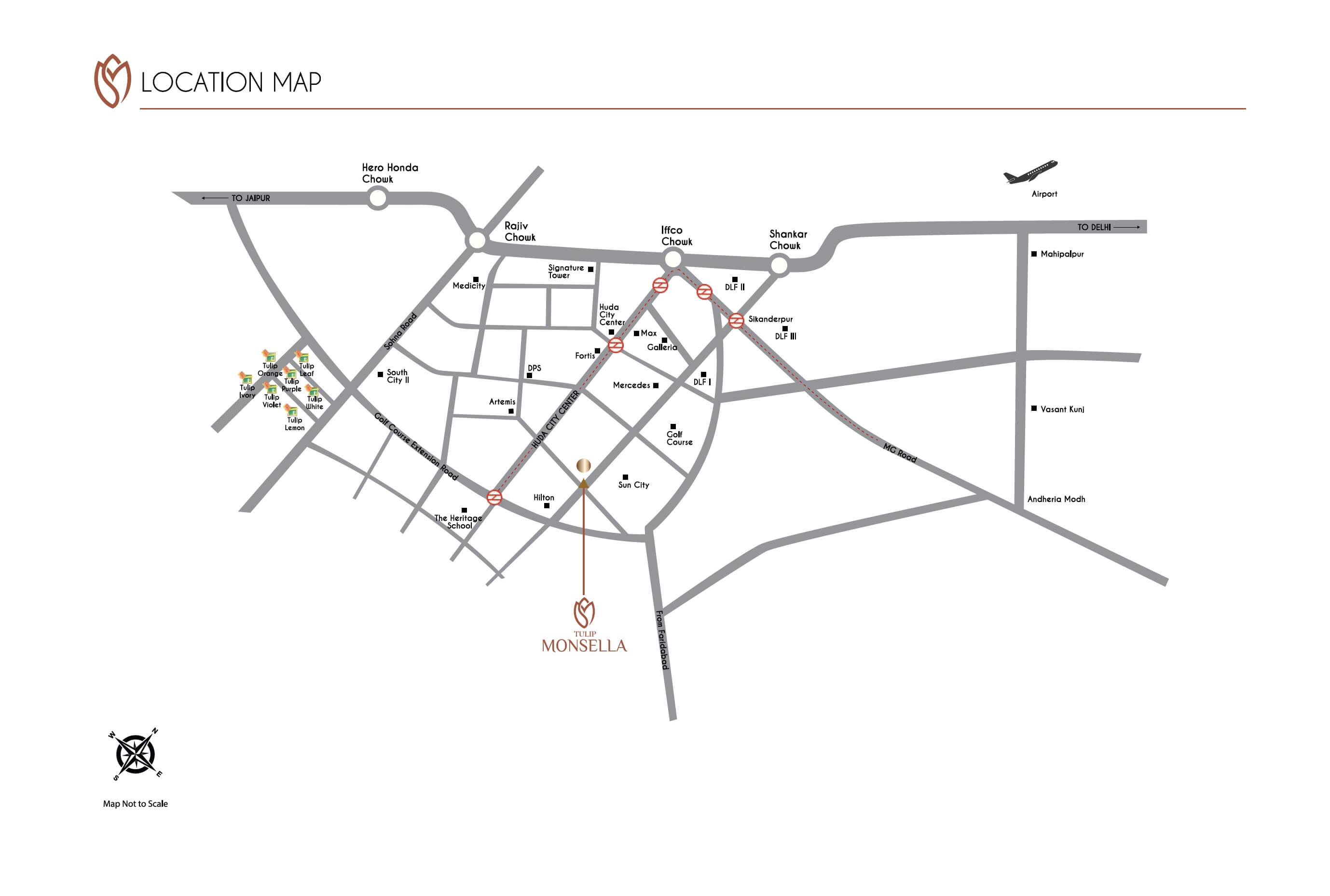 Tulip Monsella Apartment is a gated community that offers24×7 security with CCTV Surveillance features to its residents. The project is located within a walking distance of the rapid metro station, IFFCO Chowk and Cyber City Gurgaon metro stations could be reached hardly at a driving distance of 7 minutes and 10 minutes respectively.