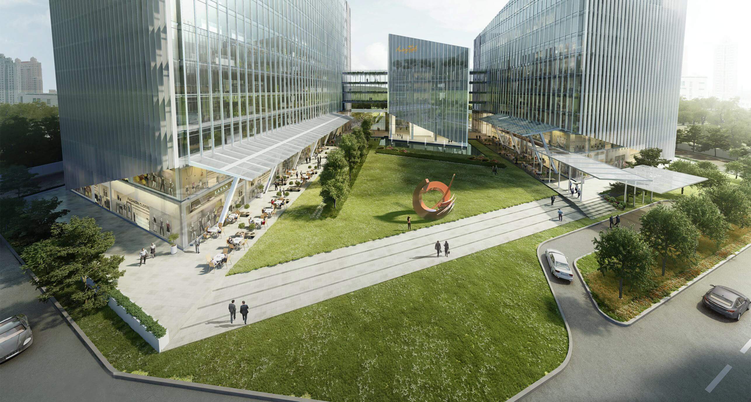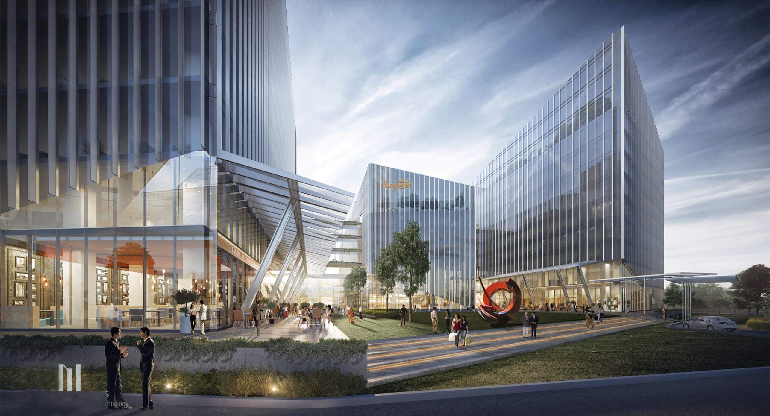 - Large Open-To-Sky Piazza connecting 3 towers.