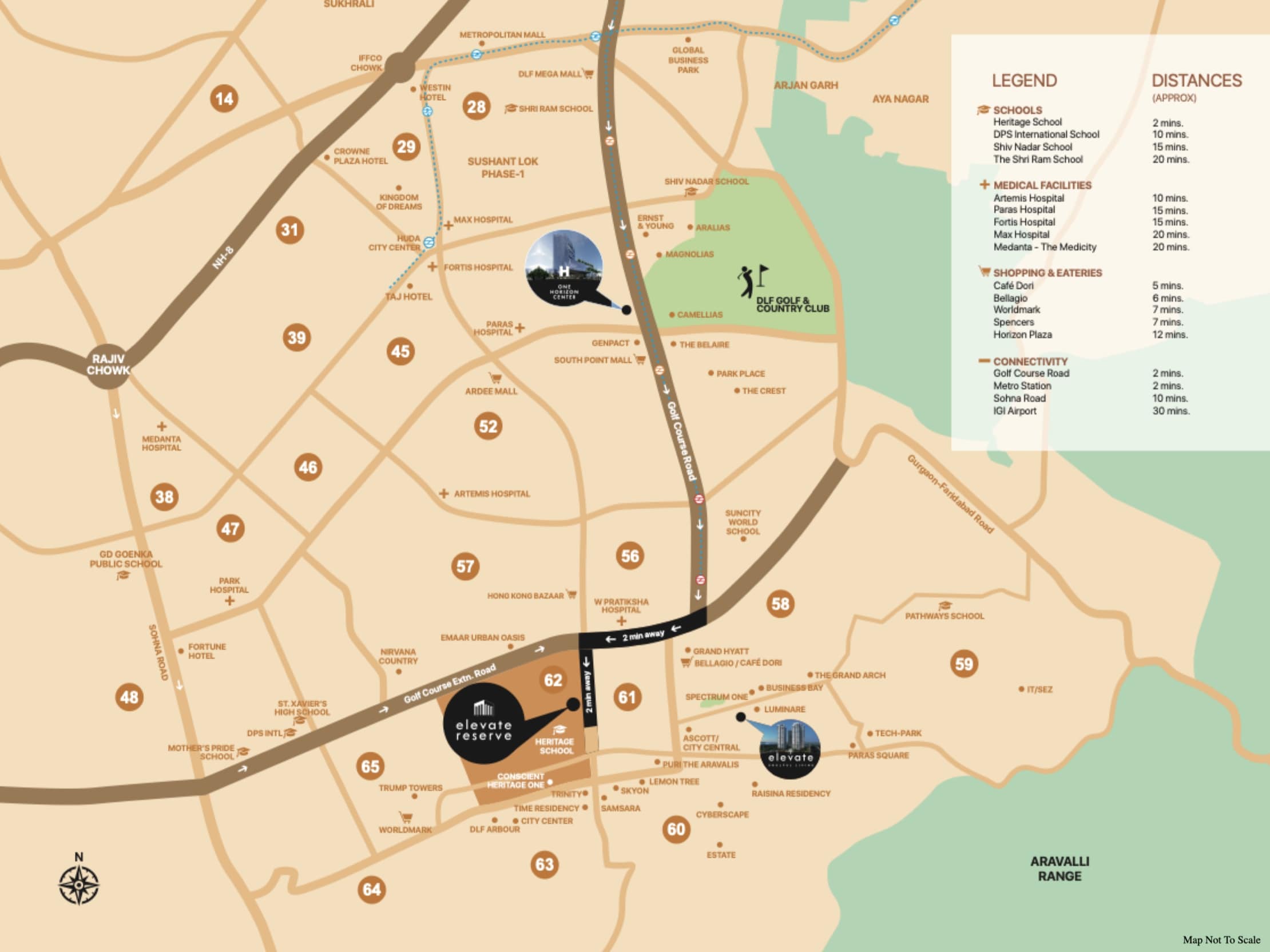Conscient Hines Elevate Reserve located in Sec 62, Golf Course Extension Nestled in a prime location off Golf Course Ext. Road, this project offers superb connectivity to Gurugram and Delhi It's part of a great neighbourhood and is surrounded by upscale developments, luxury hotels and retail hubs,