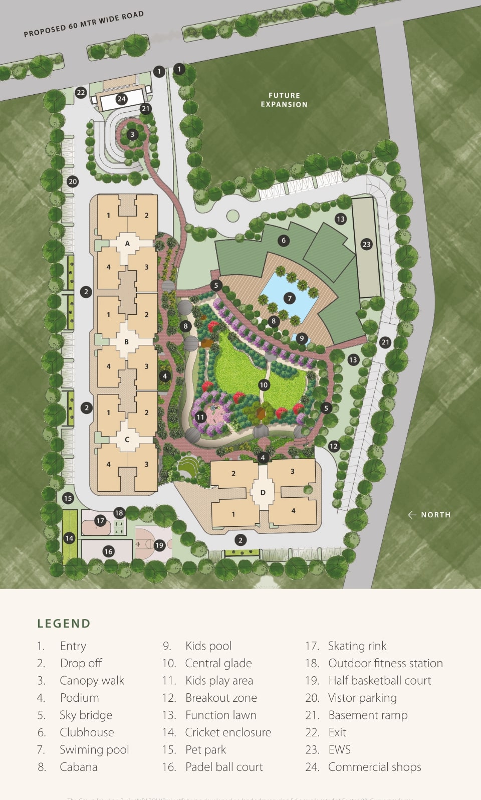 Amenities: At the heart of Conscient Parq lies its state-of-the-art clubhouse, overlooking a crystal-clear pool that serves as a focal point for leisure and recreation. The development boasts a range of amenities designed to enhance the quality of life for residents, including a canopy walk, podium, sky-bridge, clubhouse, swimming pool, kids' pool, and commercial shops.