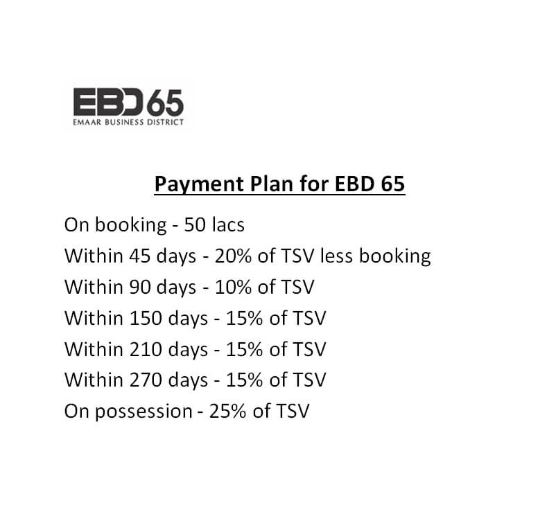 Disclaimer : Nothing contained herein intends to constitute a legal offer and does not form part of any legally binding agreement. All images are merely artistic conceptualization and does not replicate the exact product or development and should not be relied upon as definitive reference.Emaar Business District - 65 (EBD-65) is a commercial plotted colony project having RERA regn. No. RC/REP/HARERA/GGM/409/141/2020/25 dated 15.09.2020 and is being developed on land presently admeasuring 5.7354 acres owned by Active Promoters Private Limited and Balalaika Builders Private Limited in collaboration with Emaar MGF Land Limited. Development is subject to terms and conditions of 1. License No. 20 of 2020.