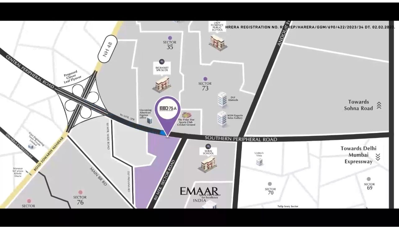 Adding another name to our success story of SCO development in Gurugram, Emaar India presents EBD 75A. Positioned on Southern Peripheral Road, this opportunity ticks all the right boxes. An opportunity to enjoy both rentals and appreciation – owing to a shining location. The only plotted commercial development from an internationally acclaimed name
