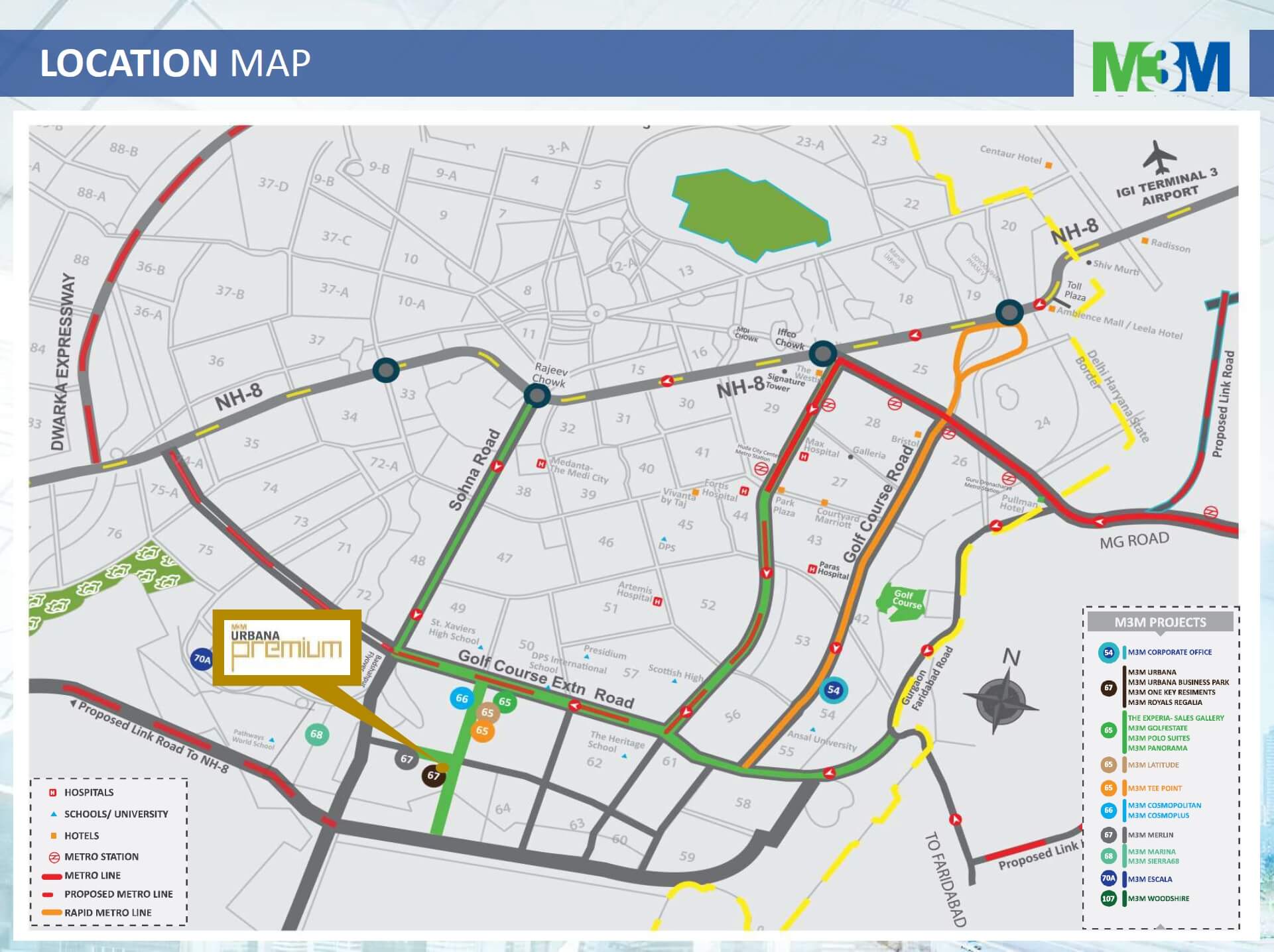 - Located On The Metro Corridor, Offering Fast, Convenient And Comfortable Connectivity To Delhi, Easy Accessibility To Nh8 As Well As To South Delhi Via Gurgaon-Faridabad Expressway.