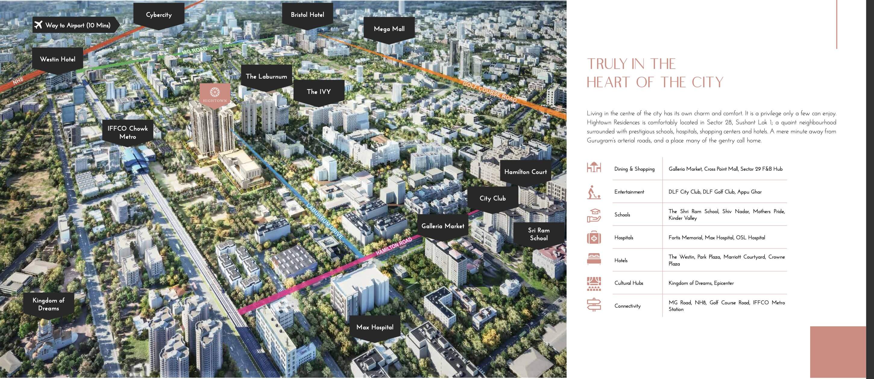 Living in the town center has beauty and comfort of its own. It is a luxury that only a few are able to experience. Sushant Lok 1, a quaint neighborhood surrounded by prestigious schools, hospitals, shopping malls, and hotels, is conveniently located in Sector 28, Hightown Residences. Just a minute away from the arterial roads of Gurugram, and a place that many of the gentry call home. Galleria Market for Dining & Shopping, Cross Point Mall, Sector 29 F&B Hub